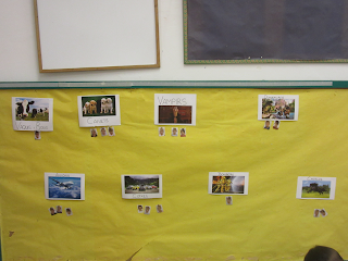 Després d'un parell de dies, na Nazaret va colocar en el nostre suro una foto de les diferents idees que teníem per al nom de la classe, per a escriure el nostre nom al costat de la foto que més ens agradés. El problema és que encara no sabem escriure el nostre nom, per això pensarem que era millor colocar la nostra foto, i ho vam fer de la següent manera: